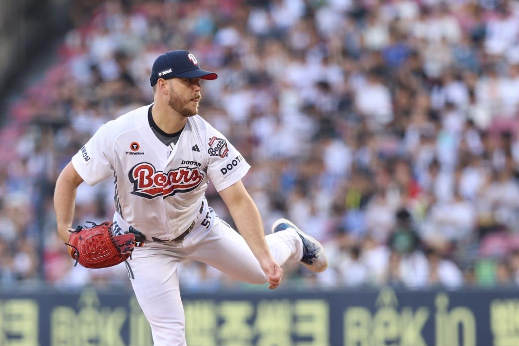 두산 베어스 외국인 투수 콜어빈이 2일 서울 잠실구장에서 열린 2025 프로야구 삼성 라이온즈와 홈 경기에거 역투하고 있다. [두산 베어스 제공. 재배포 및 DB 금지]