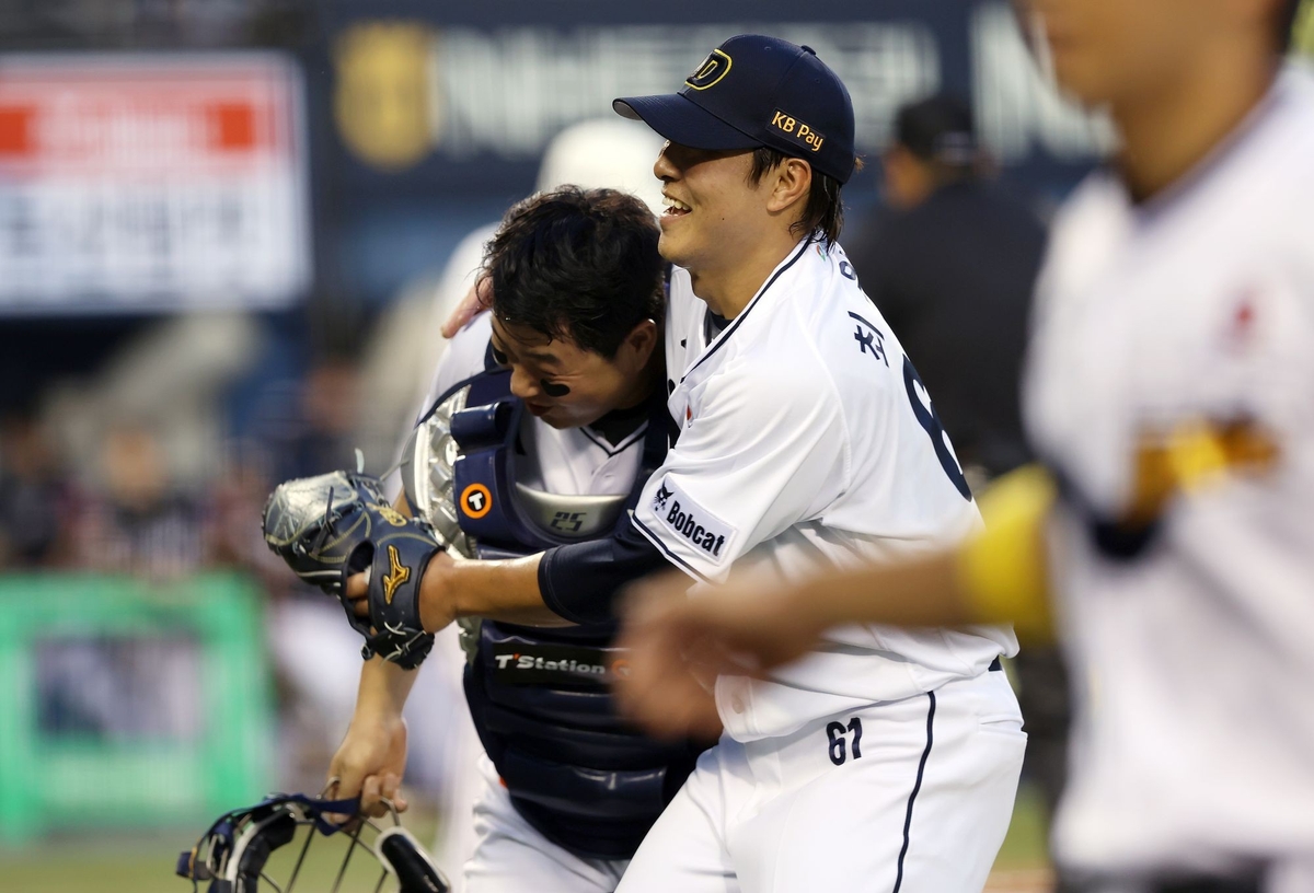 6이닝 5피안타 3볼넷 2탈삼진 1실점으로 버틴 최원준은 팀이 5-1로 앞선 채 6회 투구를 마치자 시즌 첫 승리를 예감하고 포수 양의지와 포옹하며 웃었다.