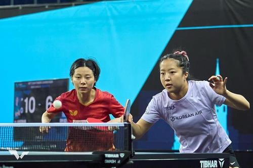 (서울=연합뉴스) 이동칠 기자 = 한국 여자탁구 에이스 신유빈(대한항공)이 월드테이블테니스(WTT) 미국 스매시 여자단식에서 이번 대회 복식 파트너인 두호이켐(홍콩)을 제치고 32강에 선착했다.