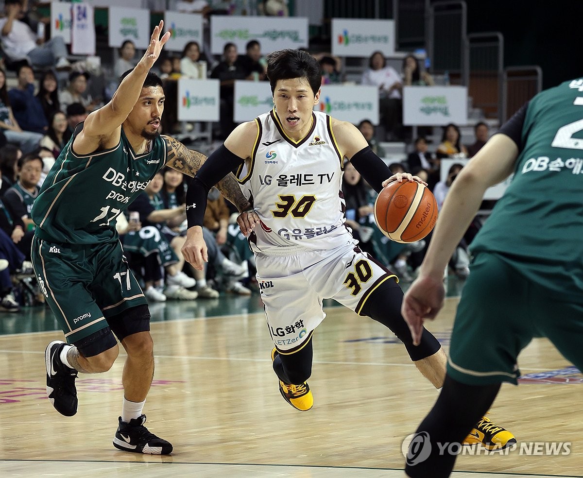 (원주=연합뉴스) 이상학 기자 = 10일 오후 강원 원주시 종합체육관에서 열린 프로농구 원주 DB와 창원 LG 경기에서 LG 두경민이 수비를 피해 드리블 하고 있다. 2024.11.10 hak@yna.co.kr