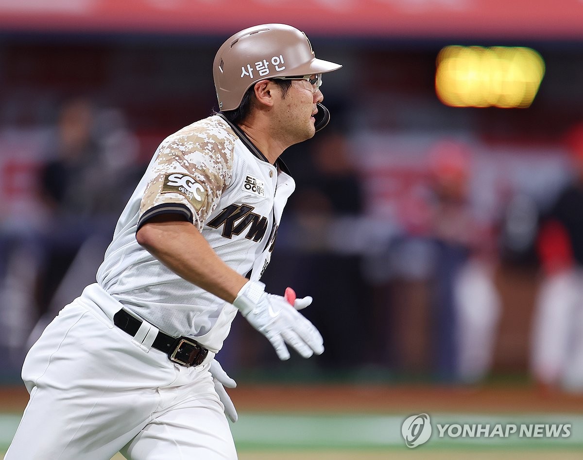 (서울=연합뉴스) 김도훈 기자 = 24일 서울 고척스카이돔에서 열린 프로야구 2025 신한 SOL 뱅크 KBO리그 KIA 타이거즈와 키움 히어로즈 경기. 6회말 1사 1,2루 키움 임지열이 3점 홈런을 쳐낸 뒤 베이스를 돌고 있다. 2025.6.24 superdoo82@yna.co.kr