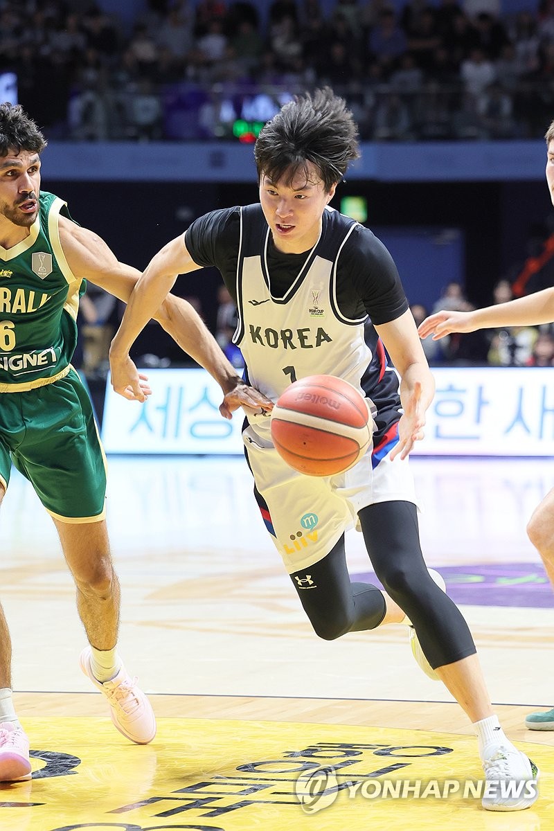 (고양=연합뉴스) 임병식 기자 = 24일 고양소노아레나에서 열린 2025 국제농구연맹(FIBA) 아시아컵 예선 4차전 한국과 호주의 경기에서 한국 이현중(일라와라)이 돌파하고 있다. 2024.11.24 andphotodo@yna.co.kr