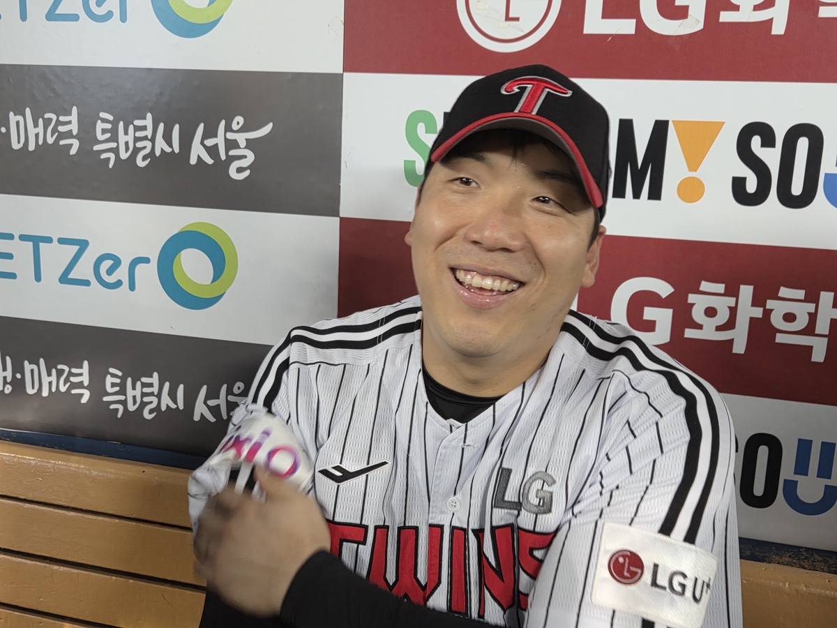 (서울=연합뉴스) 하남직 기자 = LG 김현수가 8일 서울 잠실구장에서 열린 프로야구 키움과의 홈 경기에서, 결승타를 치며 활약한 뒤 취재진과 인터뷰하고 있다.