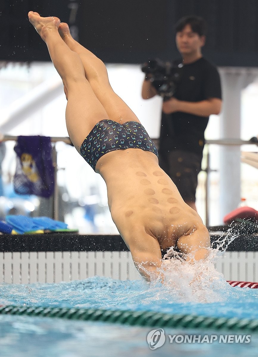 (진천=연합뉴스) 김성민 기자 = 경영 국가대표 김우민이 8일 충북 진천 국가대표선수촌에서 훈련하고 있다. 2025.7.8 ksm7976@yna.co.kr