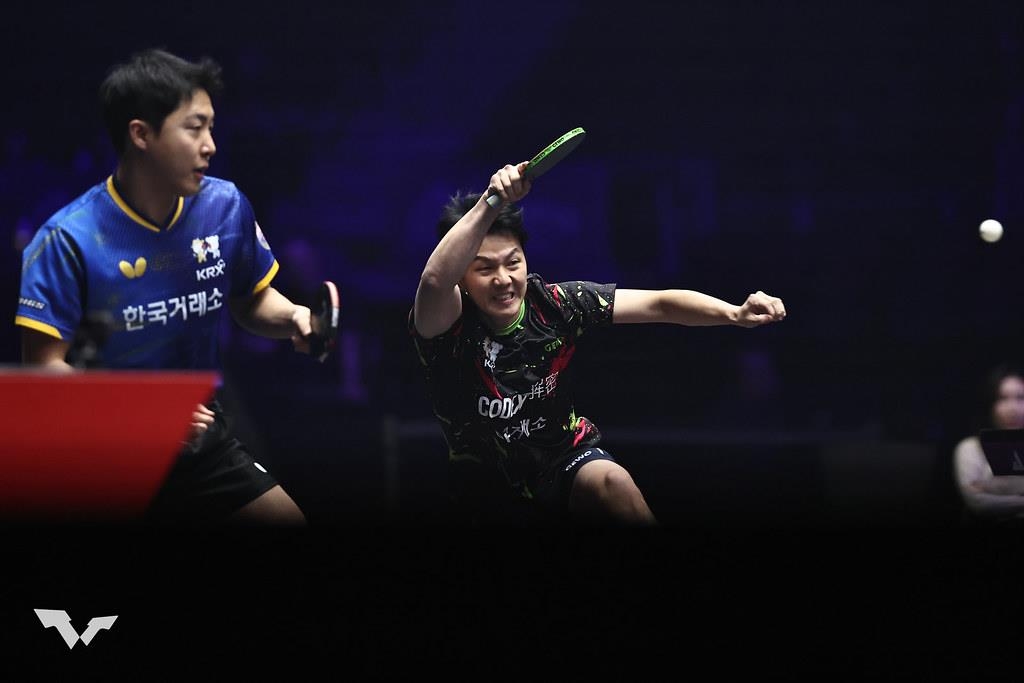 '한국거래소 듀오'인 임종훈-안재현 조가 남자복식 결승에서 세계랭킹 1위 콤비인 펠릭스 르브렁-알렉시스 르브렁(프랑스) 조에 3-1 역전승을 거두고 우승했다.
