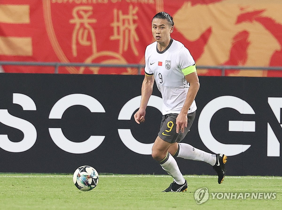 (용인=연합뉴스) 홍기원 기자 = 7일 경기도 용인미르스타디움에서 열린 2025년 동아시아축구연맹(EAFF) E-1 챔피언십(동아시안컵) 남자부 1차전 한국과 중국의 경기. 중국 장위닝이 드리블을 하고 있다. 2025.7.7 xanadu@yna.co.kr