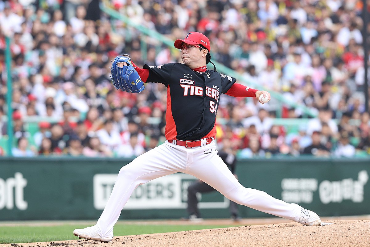 양현종은 21일 인천 SSG랜더스필드에서 열린 SSG 랜더스와 방문 경기에 선발 등판, 6이닝 97구 4피안타(2홈런) 6탈삼진 2실점으로 호투했다. 사진은 이날 경기에서 투구하는 양현종. 2025.6.21 [KIA 타이거즈 제공. 재판매 및 DB 금지] photo@yna.co.kr