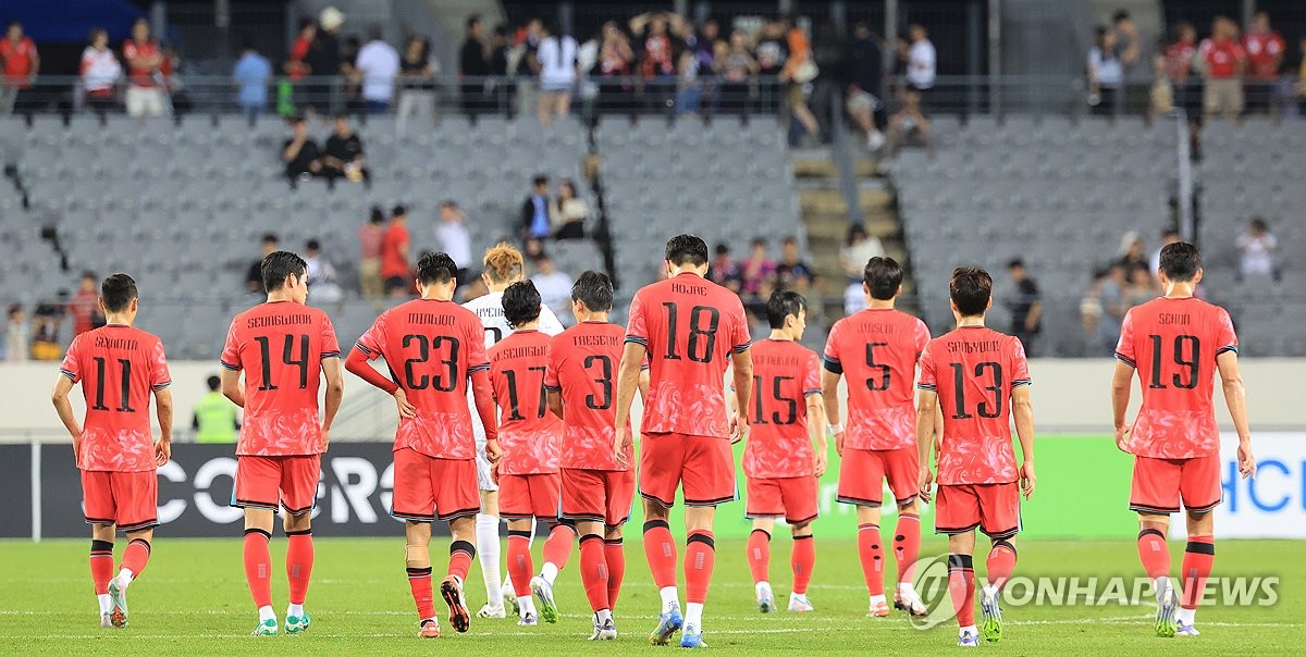 (용인=연합뉴스) 최재구 기자 = 15일 경기도 용인미르스타디움에서 열린 2025년 동아시아축구연맹(EAFF) E-1 챔피언십(동아시안컵) 남자부 최종 3차전 한국과 일본의 경기에서 패배한 한국 선수들이 퇴장하고 있다. 2025.7.15 jjaeck9@yna.co.kr