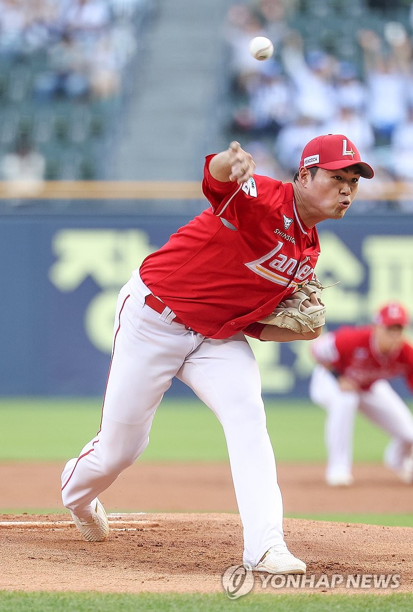 (서울=연합뉴스) 김성민 기자 = 20일 서울 잠실야구장에서 열린 프로야구 2025 신한 SOL 뱅크 KBO리그 SSG 랜더스와 두산 베어스의 경기. 1회말 SSG 선발 전영준이 역투하고 있다. 2025.5.20 ksm7976@yna.co.kr