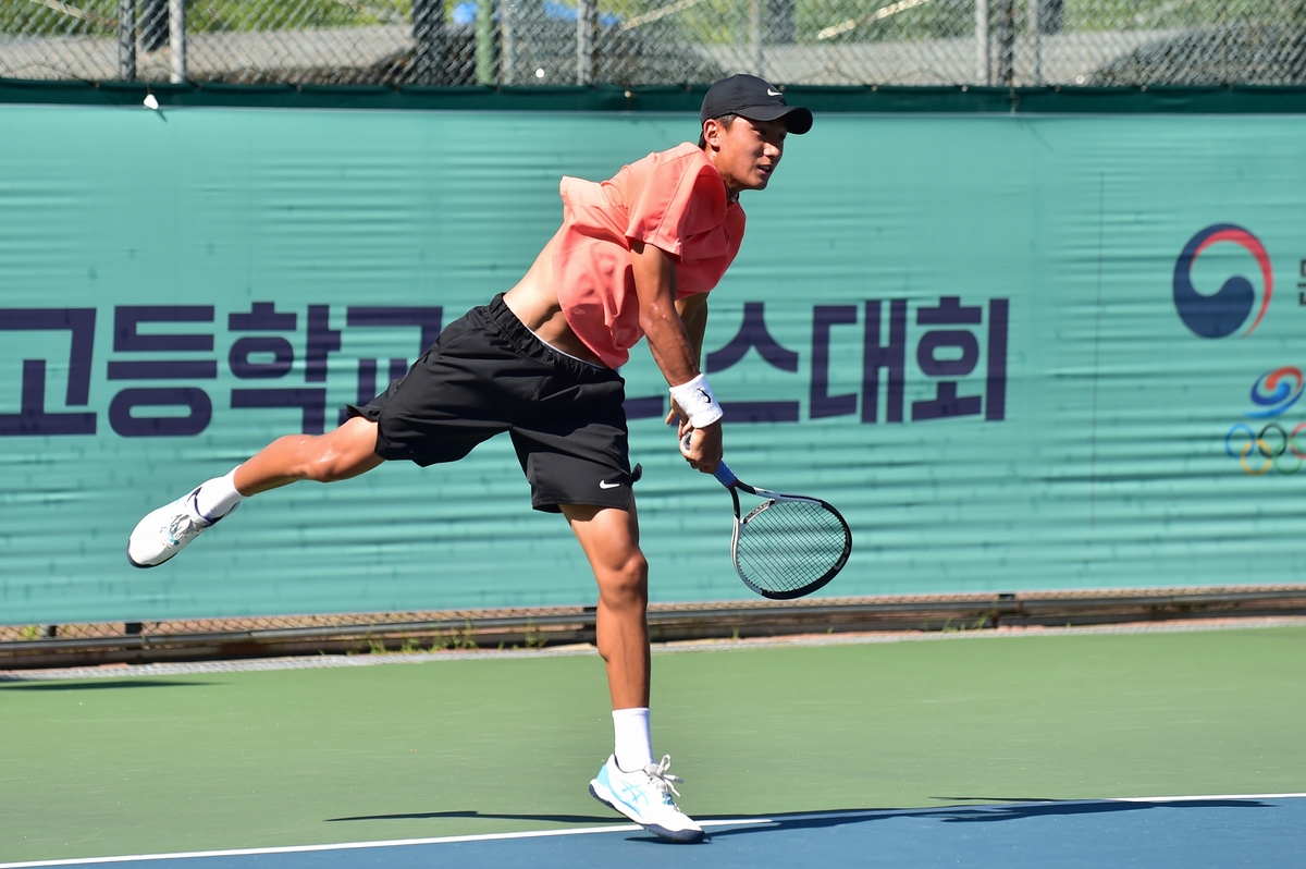 김정우는 27일 강원도 양구 테니스파크에서 열린 대회 마지막 날 남자 고등부 단식 결승에서 도겸(안동고)을 2-0(6-3 6-1)으로 제압했다.