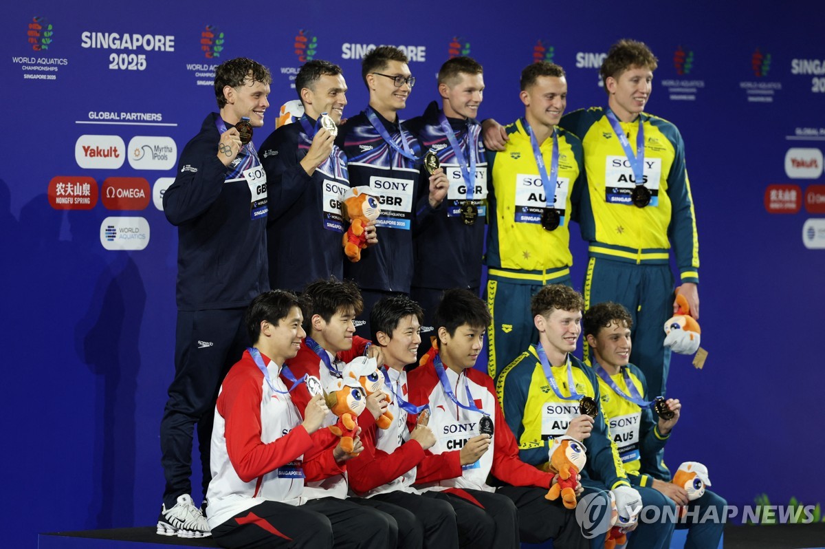 대표팀은 1일 오후 싱가포르 세계수영선수권대회 아레나에서 열린 2025 세계수영연맹 세계선수권대회 경영 남자 계영 800m 결승에서 김영범, 김우민(이상 강원도청), 이호준(제주시청), 황선우(강원도청) 순으로 레이스를 펼쳐 7분02초29의 기록으로 5위에 자리했다.