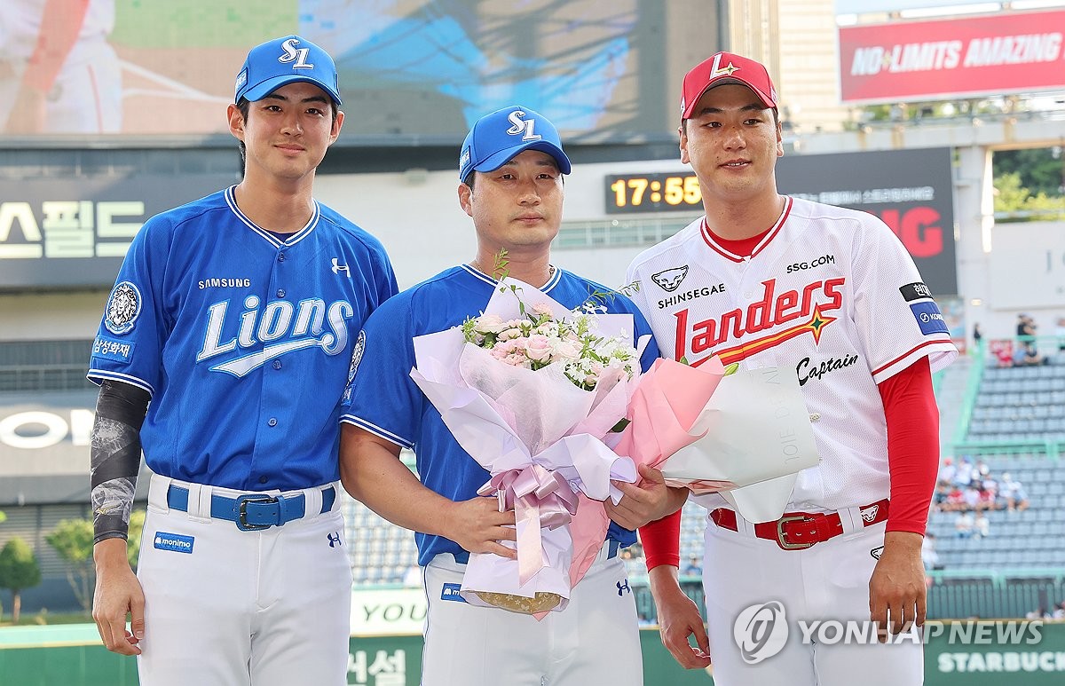 SSG의 주장이자 선발 투수인 김광현과 삼성 주장 구자욱은 오승환에게 꽃다발을 전달했고, 이후 양 팀 선수단 전원이 그라운드로 나와 오승환과 기념사진을 찍었다.