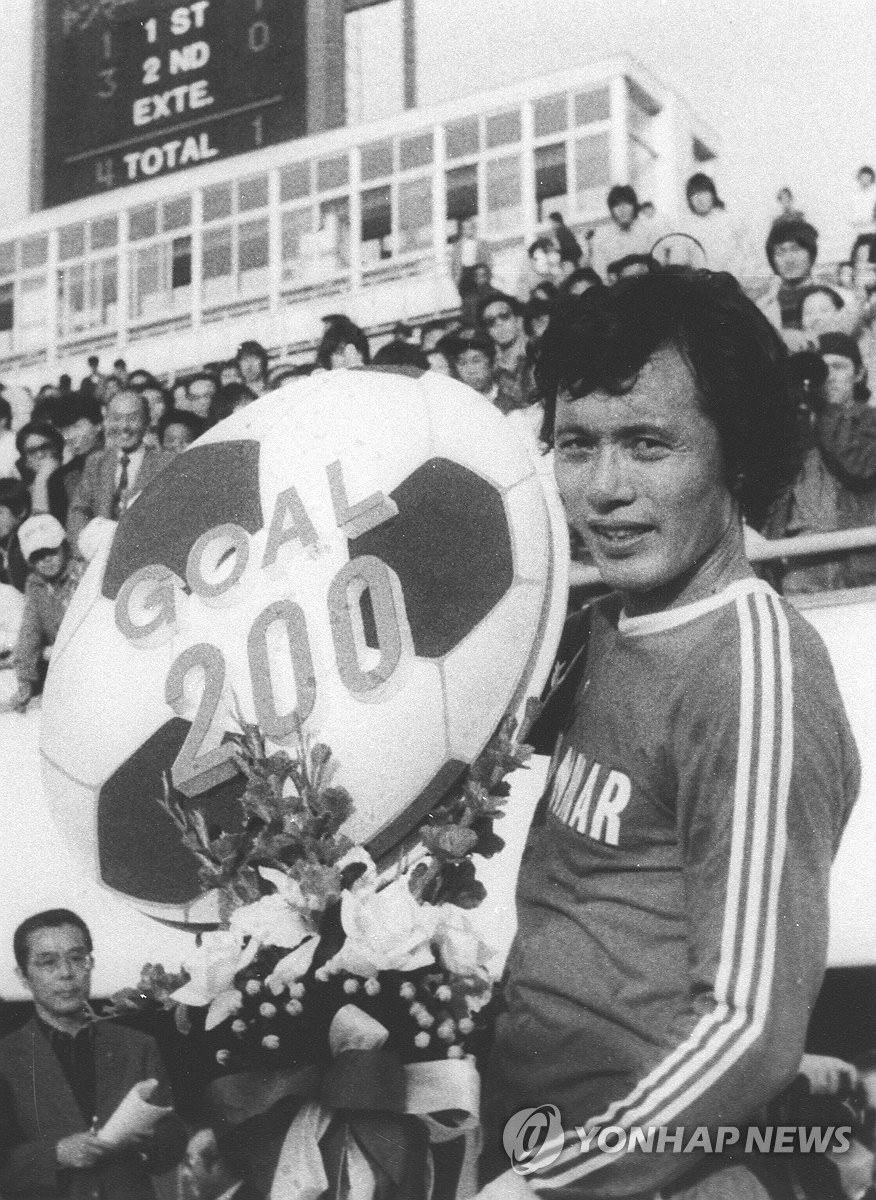 (고베 교도=연합뉴스) 사진은 1981년 11월 일본 축구 리그에서 200골을 달성했을 때의 고인.