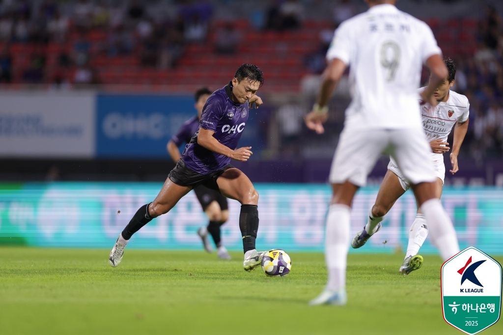 포항은 15일 안양종합운동장에서 열린 하나은행 K리그1 2025 26라운드 원정 경기에서 전반 5분 이호재가 넣은 선제골을 끝까지 지켜 안양에 1-0 신승했다.