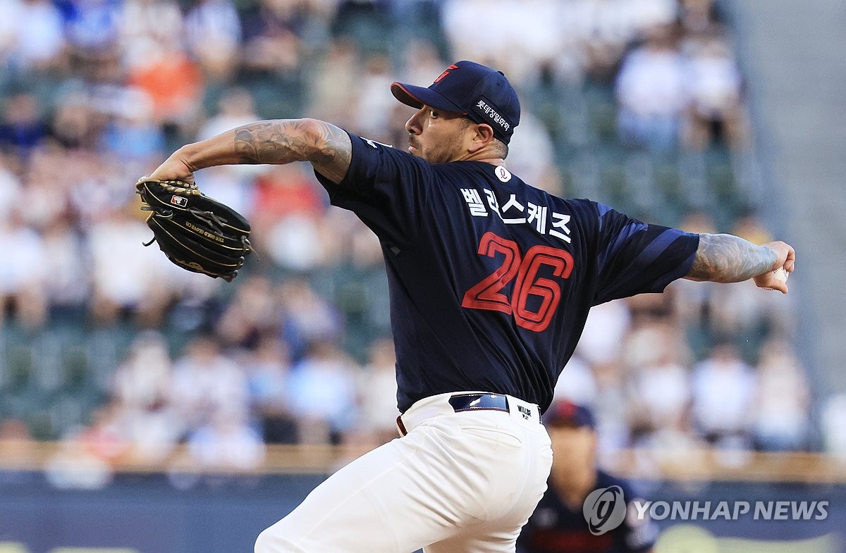벨라스케즈는 19일 서울 잠실구장에서 열린 LG 트윈스전에 선발 등판, 5이닝 7피안타 2볼넷 3탈삼진 3실점으로 고개를 떨궜다.