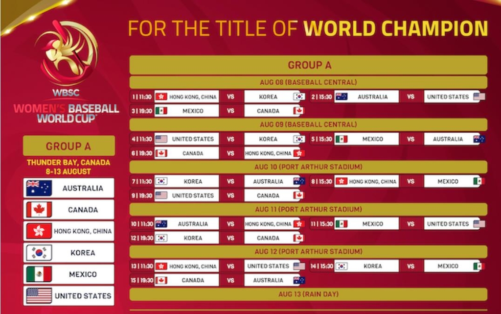 WBSC는 세계선수권대회 격인 여자야구월드컵대회 A, B 그룹 예선 일정을 23일(한국시간) 발표했다.
