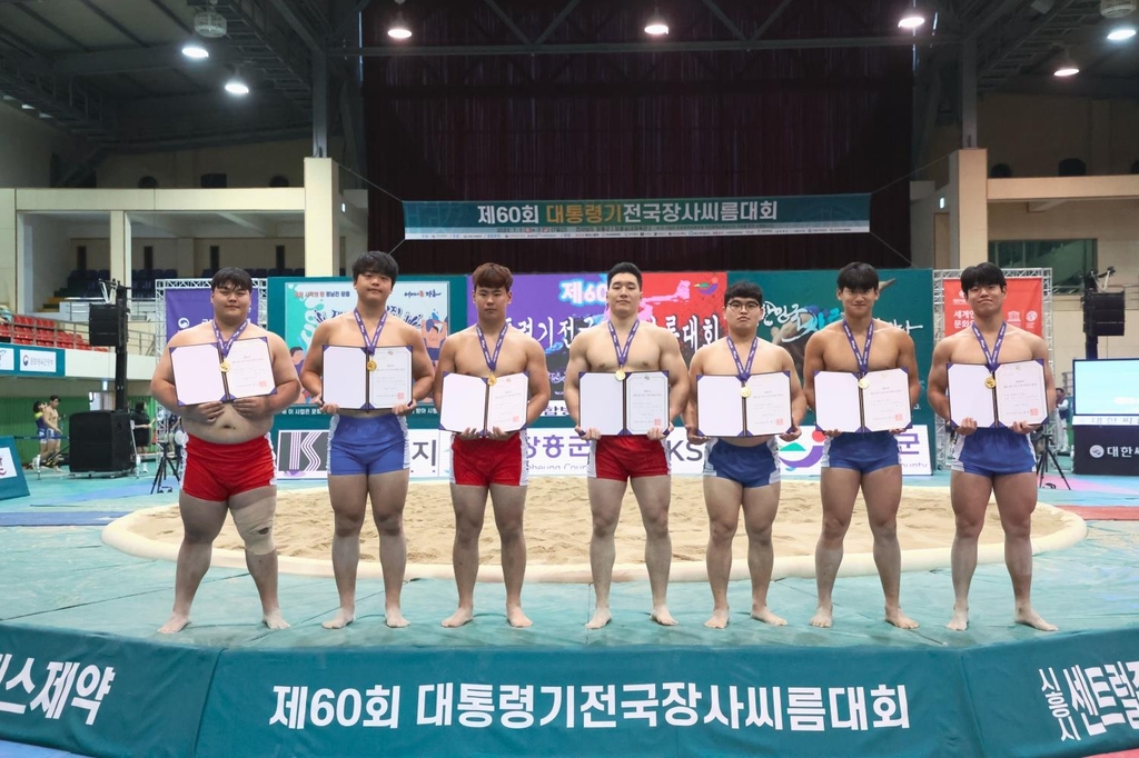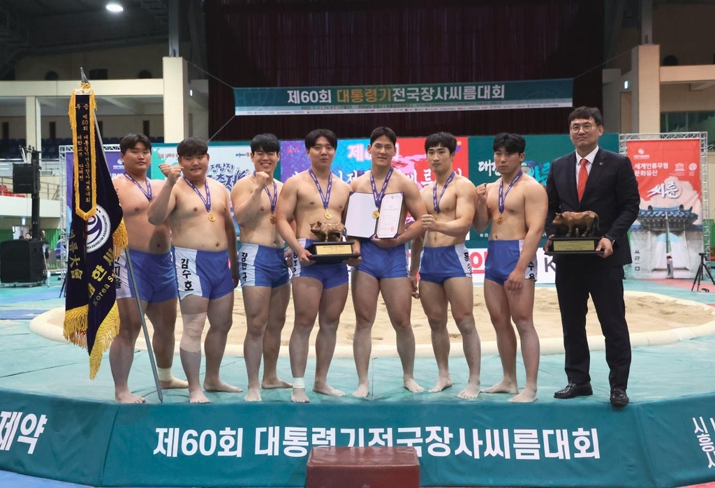 (서울=연합뉴스) 설하은 기자 = 단국대(충청남도)가 제60회 대통령기전국장사씨름대회에서 대학부 단체전 우승을 차지했다.