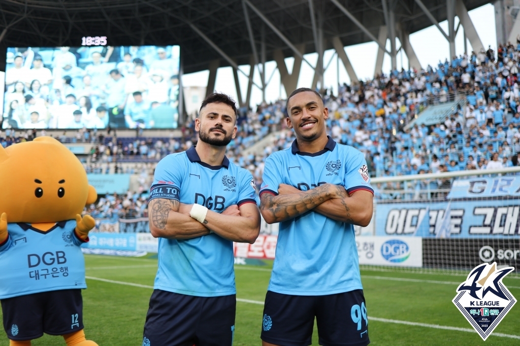 지난 주말 제주 유나이티드와 원정 경기에서 짜릿한 2-1 역전승을 거둔 대구FC는 11일 홈인 대구 DGB대구은행파크에서 강원FC를 상대로 '상위권 굳히기'에 도전한다.