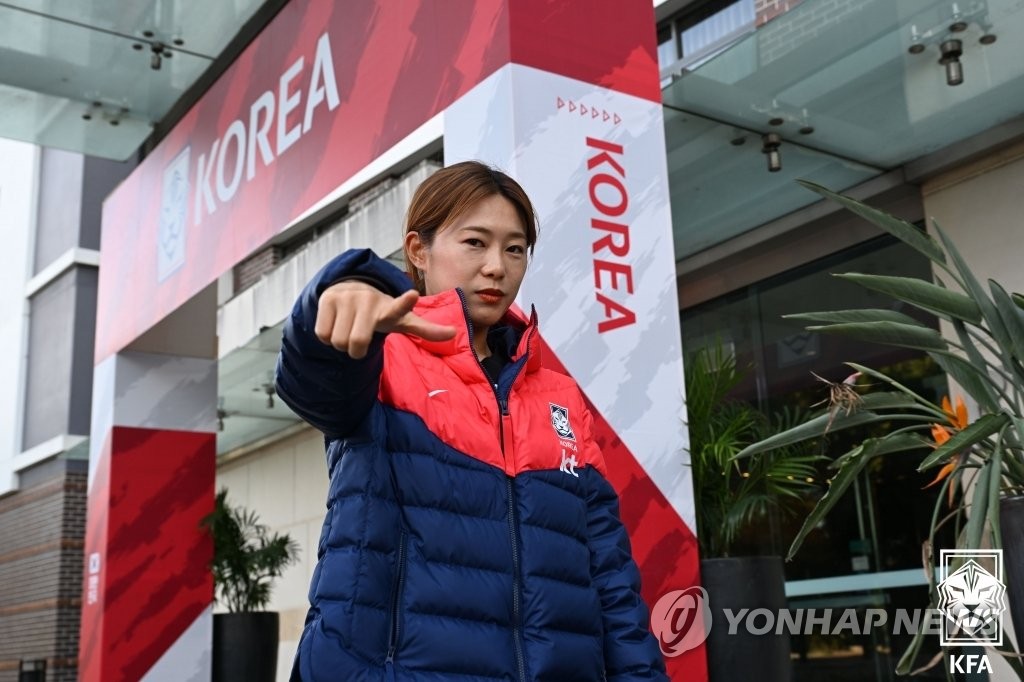 (서울=연합뉴스) 2023 국제축구연맹(FIFA) 호주·뉴질랜드 여자월드컵에 출전하는 대표팀 심서연이 15일(현지시간) 베이스캠프가 차려진 호주 캠벨타운에서 인터뷰에 앞서 포즈를 취하고 있다. 2023.7.15 [대한축구협회 제공. 재판매 및 DB 금지] photo@yna.co.kr