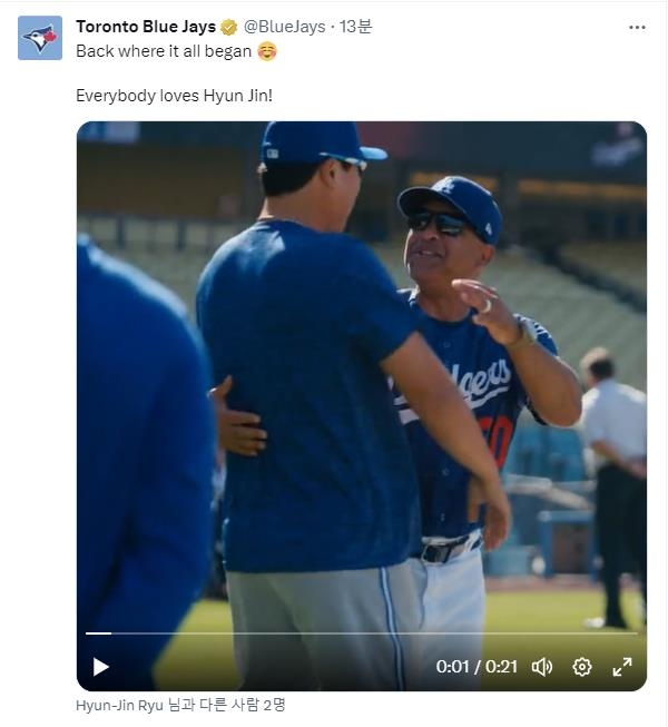 토론토 구단은 이런 모습을 영상으로 담아 "(류현진의) 모든 것이 시작된 곳"이라며 "모두가 류현진을 좋아한다"고 전했다.