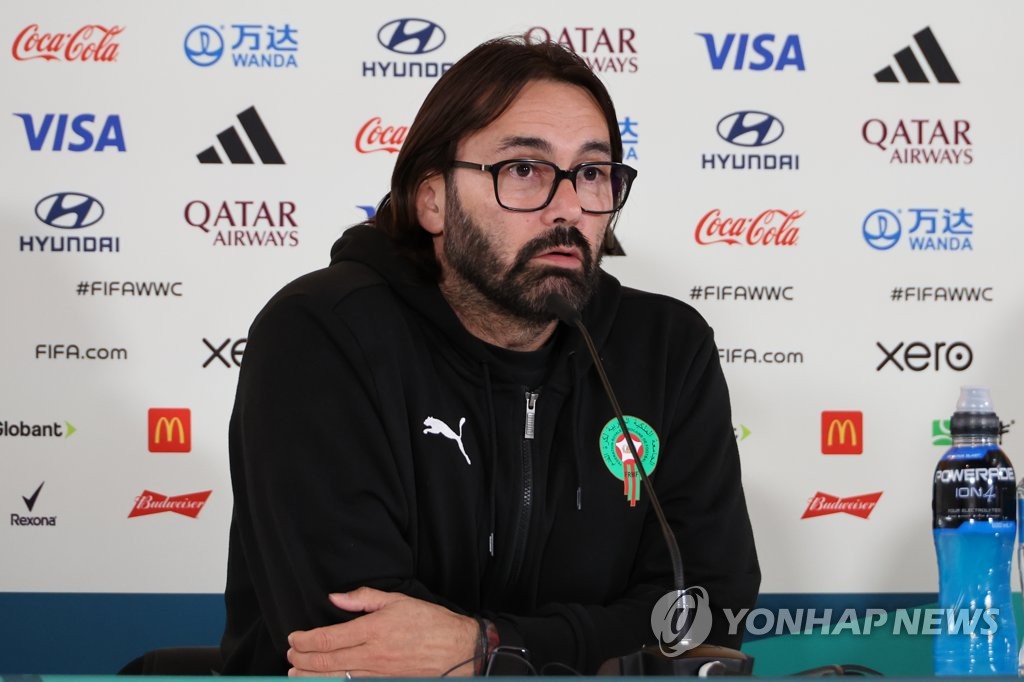 (애들레이드=연합뉴스) 김주성 기자 = 레날 페드로스 모로코 여자 축구대표팀 감독이 29일 오후(한국시간) 호주 사우스오스트레일리아주 애들레이드의 하인드마시 스타디움에서 한국과의 조별리그 2차전을 하루 앞두고 기자회견을 하고 있다. 2023.7.29 utzza@yna.co.kr
