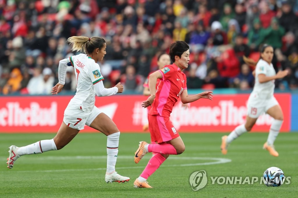 (애들레이드=연합뉴스) 김주성 기자 = 30일 오후(한국시간) 호주 사우스오스트레일리아주 애들레이드의 하인드마시 스타디움에서 열린 2023 국제축구연맹(FIFA) 호주·뉴질랜드 여자 월드컵 H조 2차전 한국 대 모로코 경기.