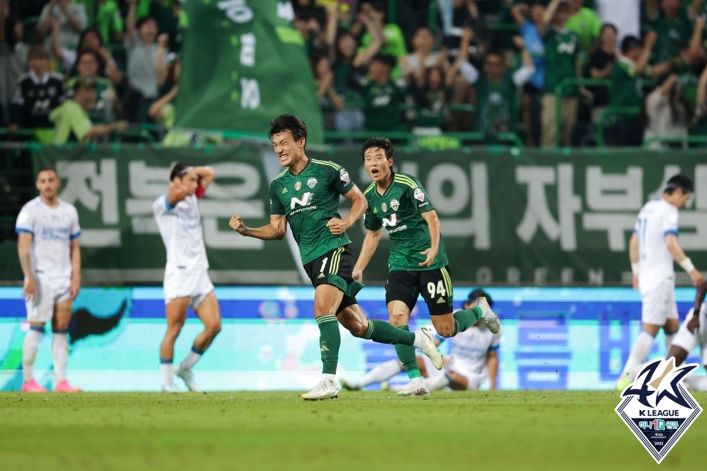 반면 이날 승리했다면 2위 포항 스틸러스(승점 45)를 바짝 뒤쫓을 수 있었던 전북(3위·12승 9무 4패·승점 41)은 역전 득점은 올리지 못하고 무승부를 받아들여야 했다.