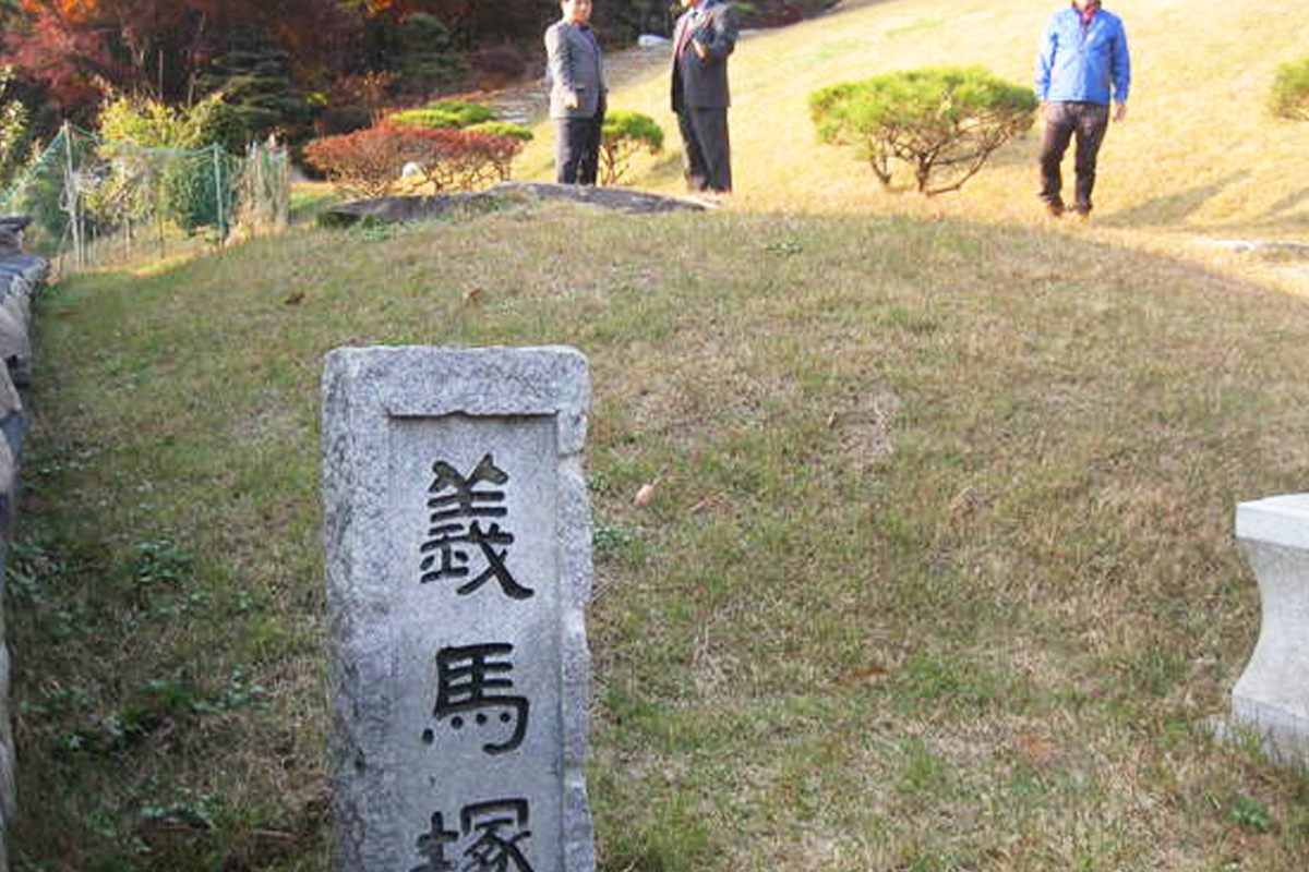 의마총은 ‘의롭고 충성스러운 말의 무덤’이라는 뜻으로 400년 전 조성된 말 무덤입니다.