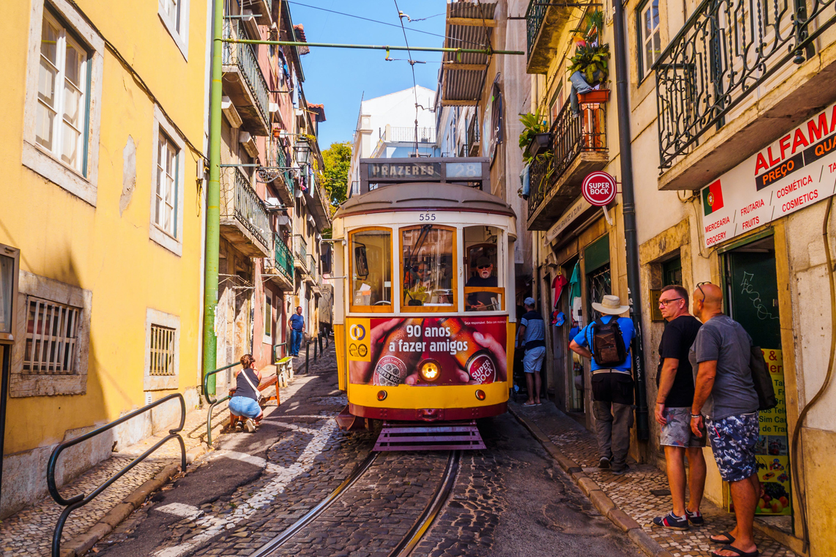 리스본에서는 트램을 타고 도심을 돌아다니며 낭만적인 여행을 즐길 수 있습니다.