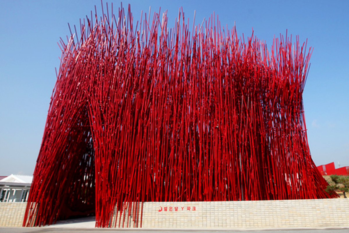 거대한 붉은 대나무 작품은 사진을 남기기도 좋은 장소로 손꼽히는데요.