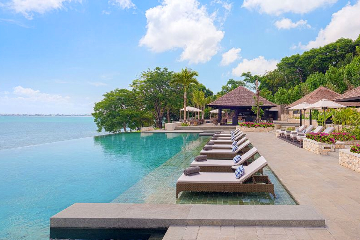 아름다운 풍경을 자아내는 인피니티 풀은 래플스 발리의 인기 있는 부대시설이죠.