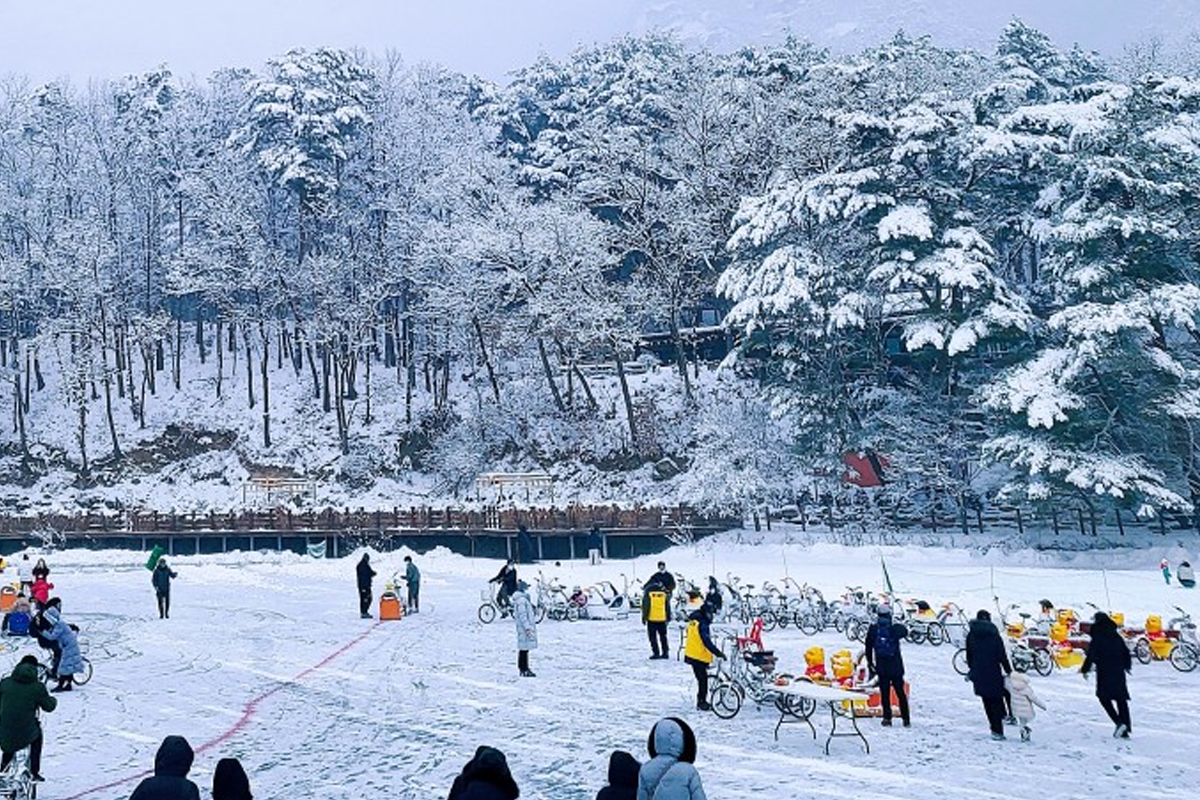 꽁꽁 언 산정호수 위를 달리며 스릴 넘치는 겨울 활동을 즐길 수 있습니다.