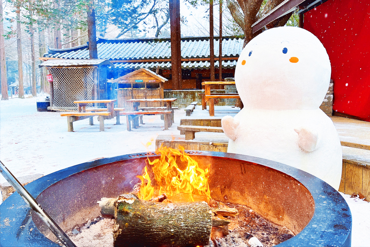 눈썰매장을 즐길 수 있으며 모닥불에서 마시멜로를 구워 먹을 수도 있죠.