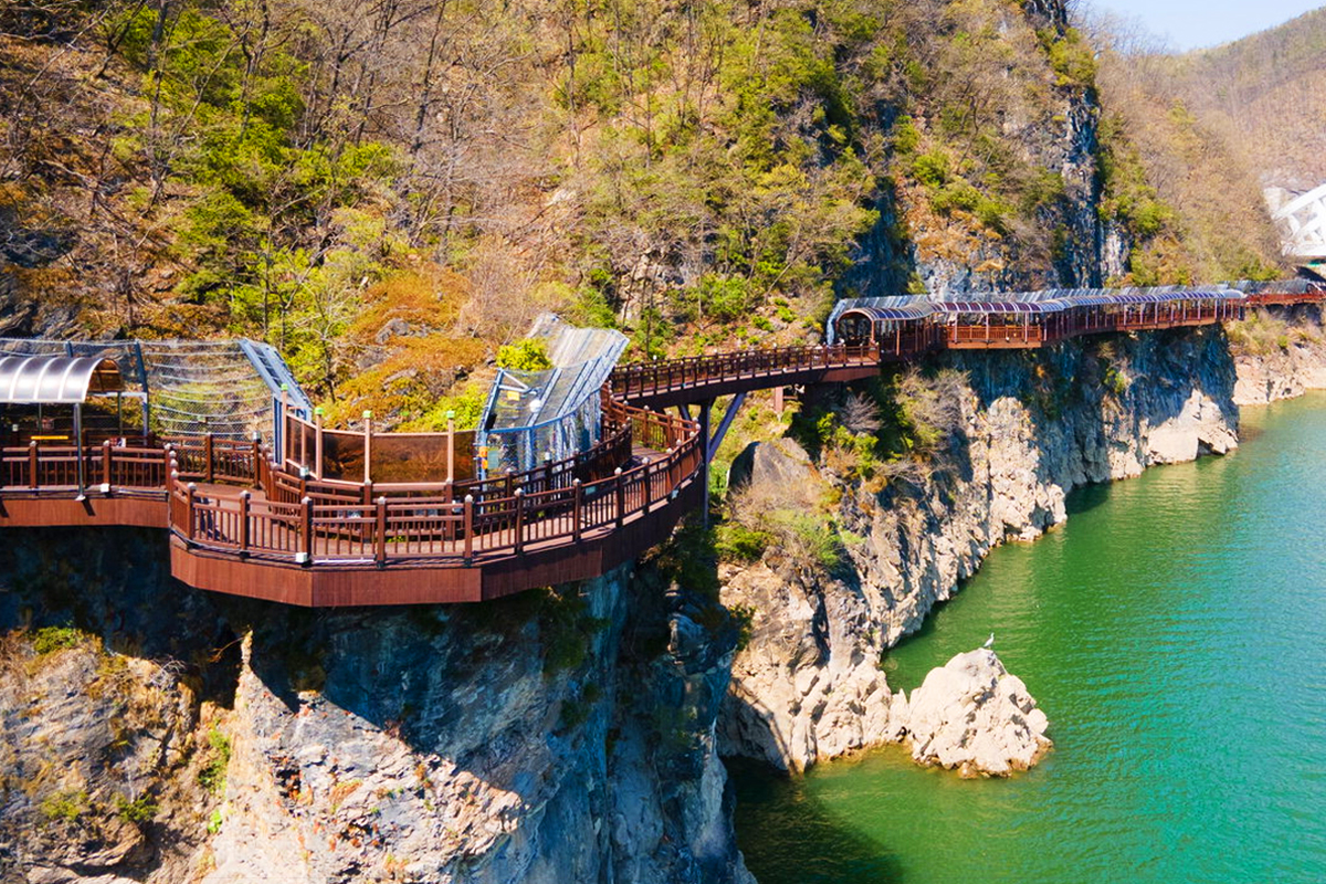 충청북도 단양군에는 남한강 암벽 따라 트레킹을 즐길 수 있는 ‘단양강 잔도’가 있습니다.
